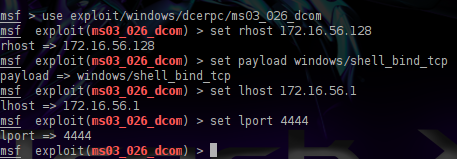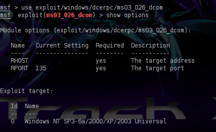 The exploit that we are going to use is the ms03_026_dcom.The next image is showing the available options for this exploit.