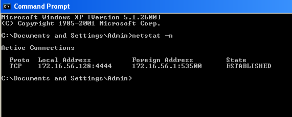 As we can see the exploit have worked and now we have a shell in the remote system.From the other hand the user can identify that someone has connected to his machine by using the command netstat -n in the command prompt.