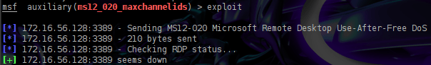 When we run this module we will notice that it will send some packets and then the RDP service will be unavailable causing a DoS to the target machine.