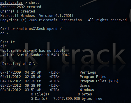 Our next option is to try to discover any important files that exist on the local drive of this remote host.For that reason we will need to obtain a shell instead of the meterpreter session.
