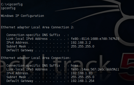 We can use the ipconfig command in order to check the interfaces of the target.As you can see from the image below this target has 2 interfaces which means that it is connected to another network as well.