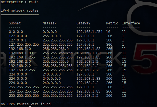 The privilege escalation have succeeded and now we have full control of the remote system.We can also attempt to check the routing table in order to discover other valid networks and IP addresses.