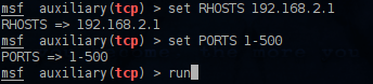 We are configuring the scanner giving the port range from 1-500 and we run it.