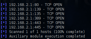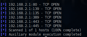 The pivot has created and all the traffic will pass to the network 192.168.2.0 (which is a network that we cannot reach directly from outside) from the machine that we have already compromise through the meterpreter session 5.We can now configure the module.For this scenario we will scan only a small range of IP’s from 192.168.2.1 to 192.168.2.5.