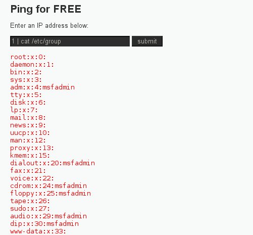 As we can see in the DVWA we have a free ping utility which allows us to ping any IP address.