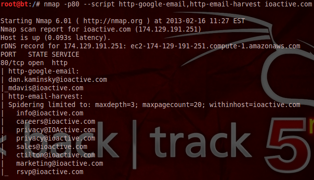 Email accounts can prove also important in a penetration test as it can be used as usernames,in social engineering engagements (i.e Phishing Attacks)or in a situation where we have to conduct brute force attacks against the mail server of the company.There are two scripts available for this job: