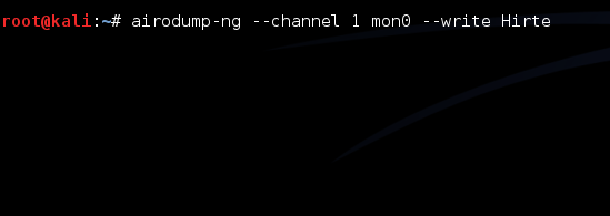 The next step is to configure airodump-ng to capture packets and to write those in a file called Hirte.