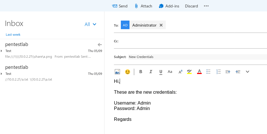 Emails tha will be sent to the mailbox of the target account (Administrator) will be forwarded automatically to the mailbox that is under the control of the red team.