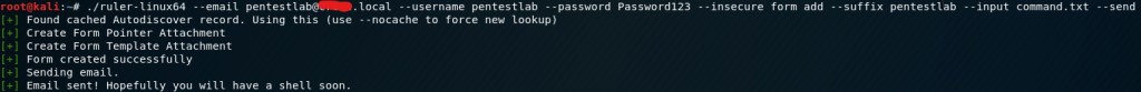 ./ruler-linux64 --email pentestlab@pentestlab.local --username pentestlab --password Password123 --insecure form add --suffix pentestlab --input command.txt --send