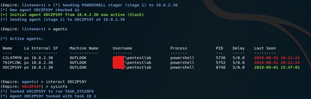 Commands can be executed from the PowerShell Empire in order to perform post-exploitation activities.