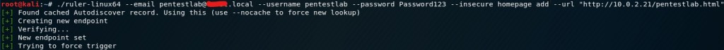 ./ruler-linux64 --email pentestlab@pentestlab.local --username pentestlab --password Password123 --insecure homepage add --url "http://10.0.2.21/pentestlab.html"