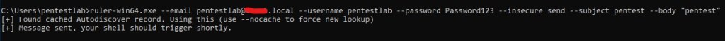 ruler-win64.exe --email pentestlab@pentestlab.local --username pentestlab --password Password123 --insecure send --subject pentest --body "pentest"