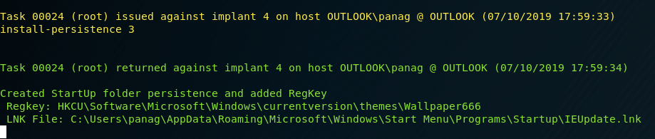 Since the shortcut exist on the startup folder the stager will executed in the next Windows logon and a connection will established with the command and control server.