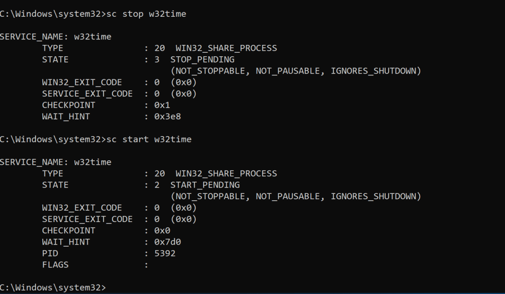 sc.exe start w32time