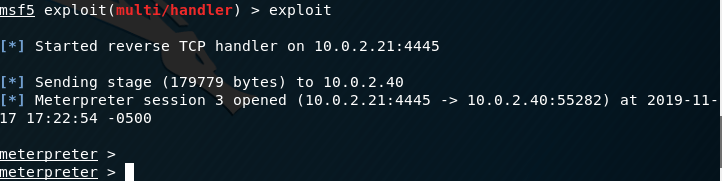 The code will executed and a Meterpreter session will open. However this will cause Microsoft Word to crash which will provide an indicator to the user that the software has been modified or it needs to be re-installed.