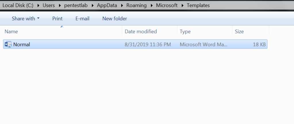 C:\Users\pentestlab\AppData\Roaming\Microsoft\Templates