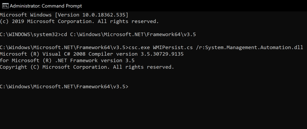 csc.exe WMIPersist.cs /r:System.Management.Automation.dll