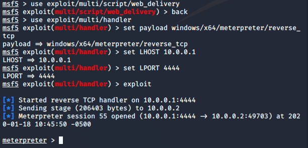 Metasploit Framework can be used to host the scriptlet and obtain the session. However other command and control frameworks such as PoshC2 have similar capability and can capture regsvr32 payloads.