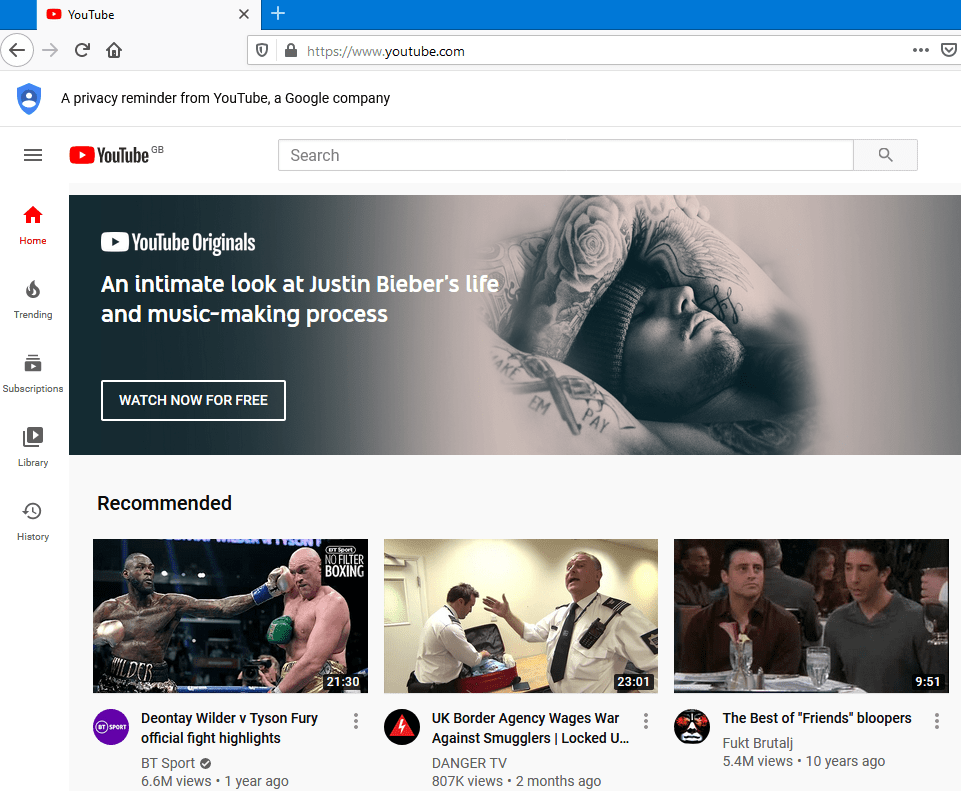 Once the user enter his credentials a redirection will follow to YouTube website.