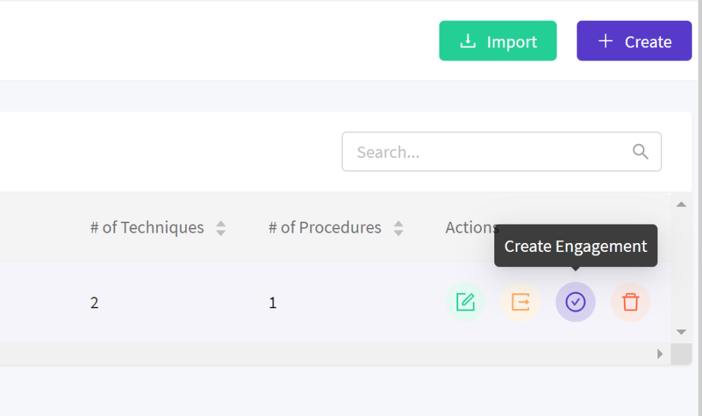 Engagements can be created from the Runbooks section by pressing the check purple button. The Runbook will be associated to the engagement.