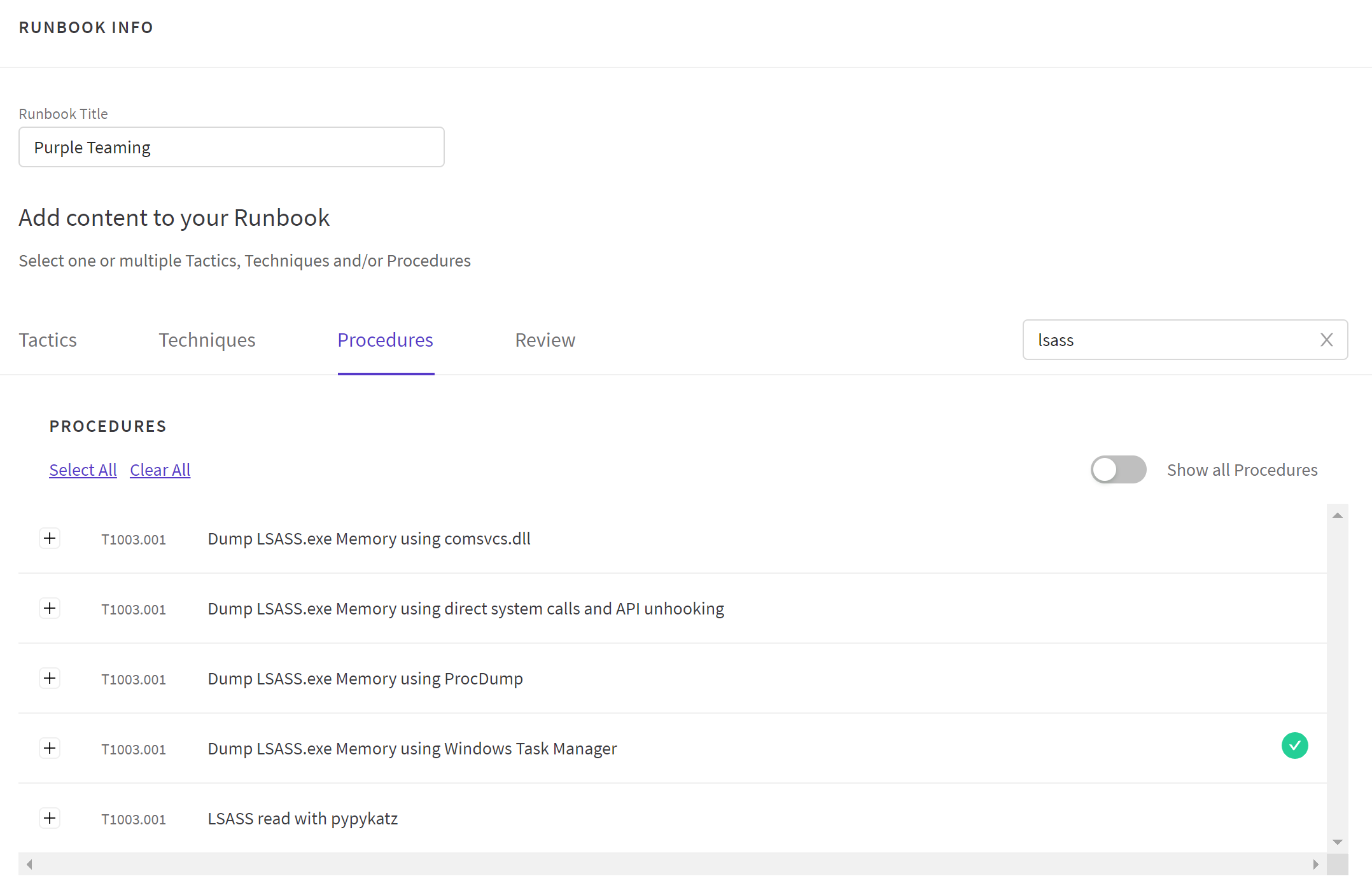 In summary the Purple Teaming RunBook will contain two tactics, two techniques and one procedure.