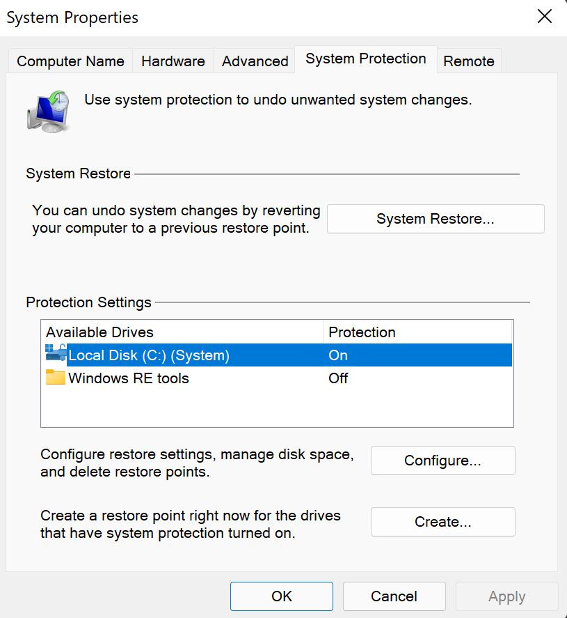 - Enabled System Protection