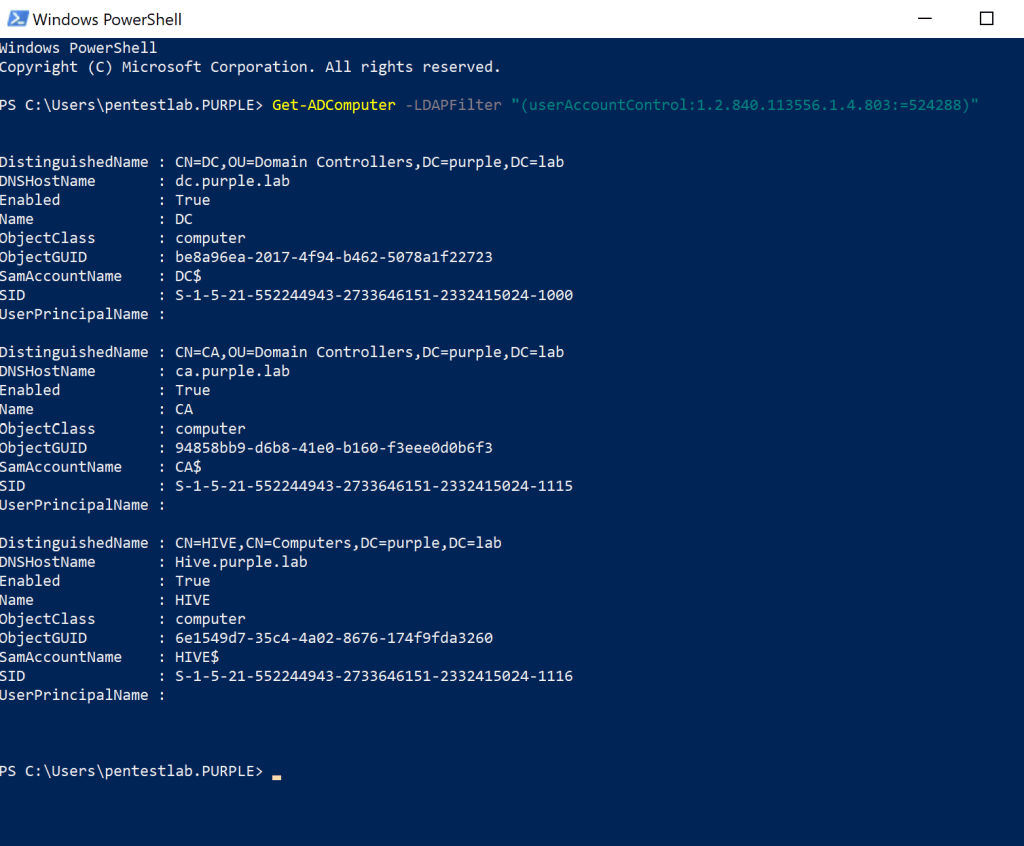 Get-ADComputer -LDAPFilter "(userAccountControl:1.2.840.113556.1.4.803:=524288)"