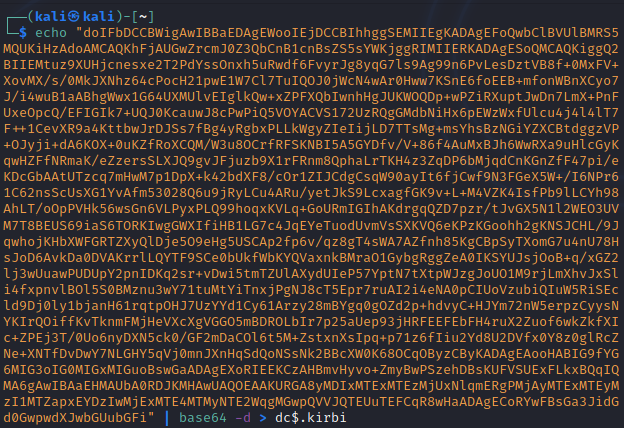 The base64 ticket can be decoded and written into a file with the .kirbi extension.
