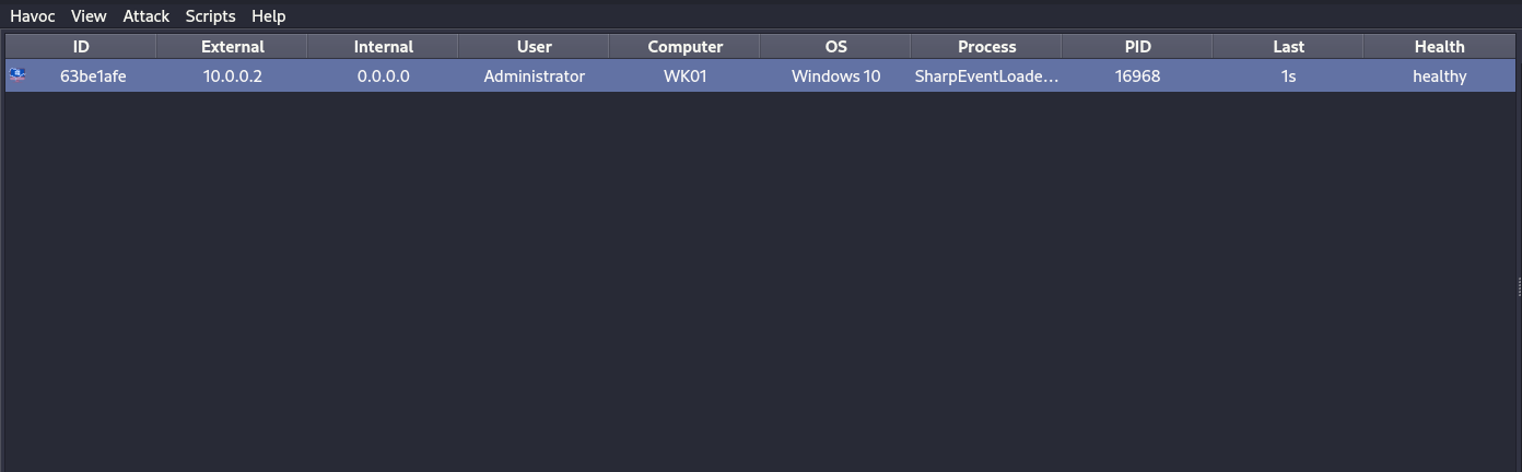 When the proof of concept tool is executed the shellcode will executed which will lead to a C2 connection.