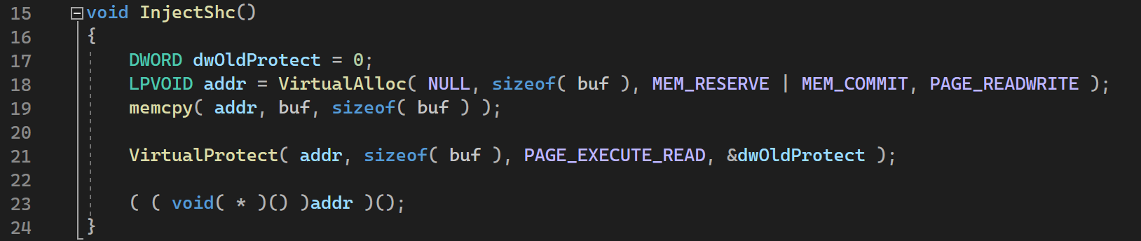 CreateThread( NULL, 1024 * 1024, ( LPTHREAD_START_ROUTINE )InjectShc, NULL, 0, &tid );