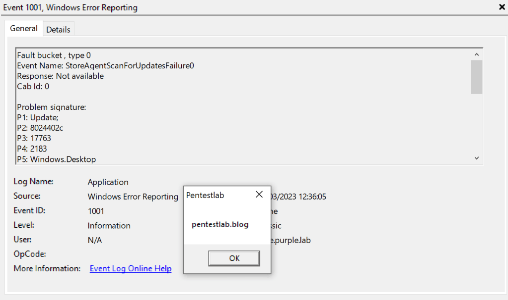 Event viewer is a component of Microsoft Windows that displays information related to application, security, system and setup events. Even though that Event Viewer is used mainly for troubleshooting windows errors by administrators could be also used as a form a persistence during red team operations. Microsoft in order to assist administrators to retrieve direct information for a particular event ID over the web has embedded a functionality which is called Event Log Online Help.