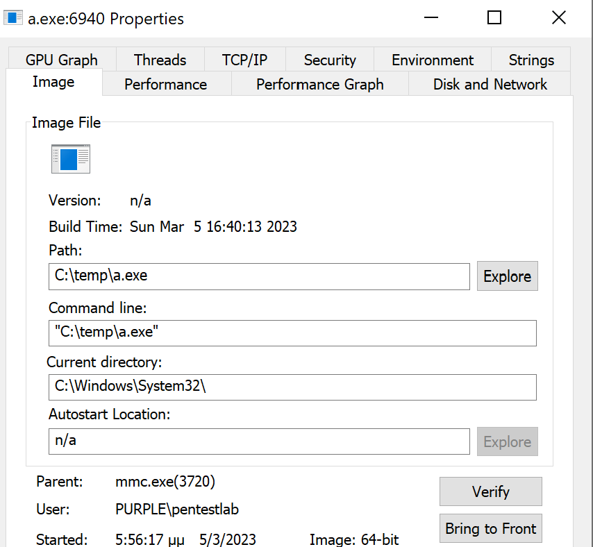 - Parent Process (mmc.exe) –> Child Process (Payload)