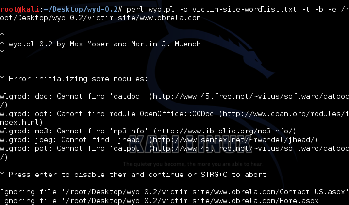 In order to achieve that we will use Wyd. The idea behind this tool is to analyze files in various formats (plain, html, php, doc, ppt, mp3, pdf, jpeg) and to extract words and strings.