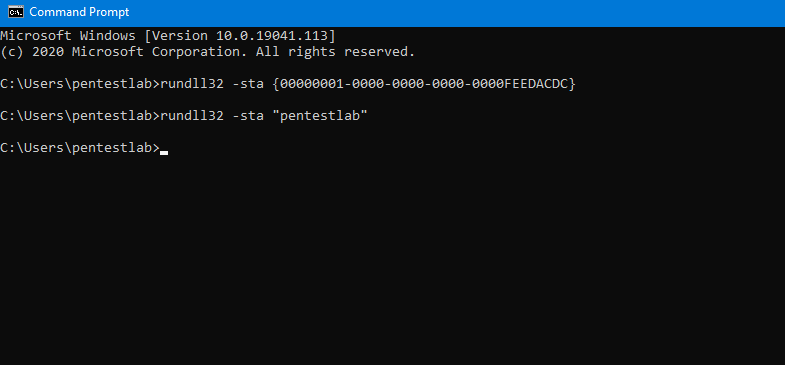 rundll32 -sta {00000001-0000-0000-0000-0000FEEDACDC}